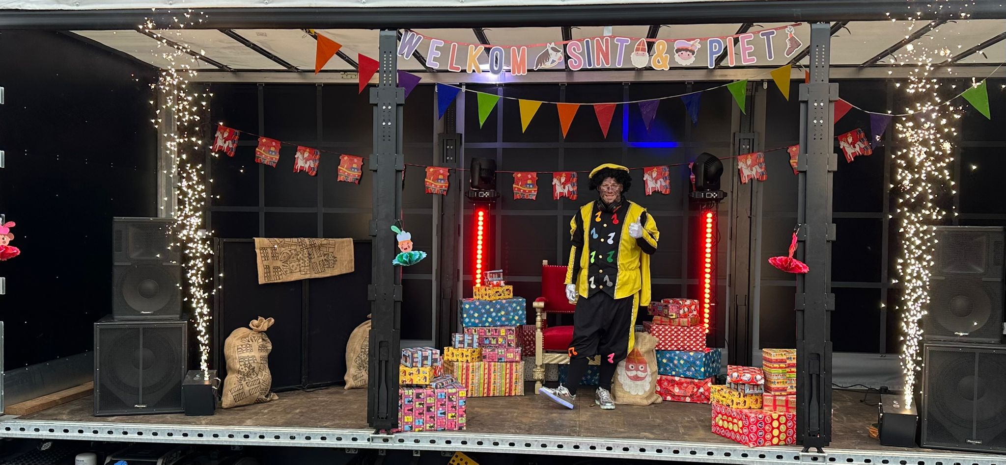 “Voor een basisschool waar wij de intocht voor verzorgde, hebben wij de Disco Piet ingezet om het publiek vast op te warmen. Hij ondersteune danspiet en sinterklaas met zijn professionele apparatuur!