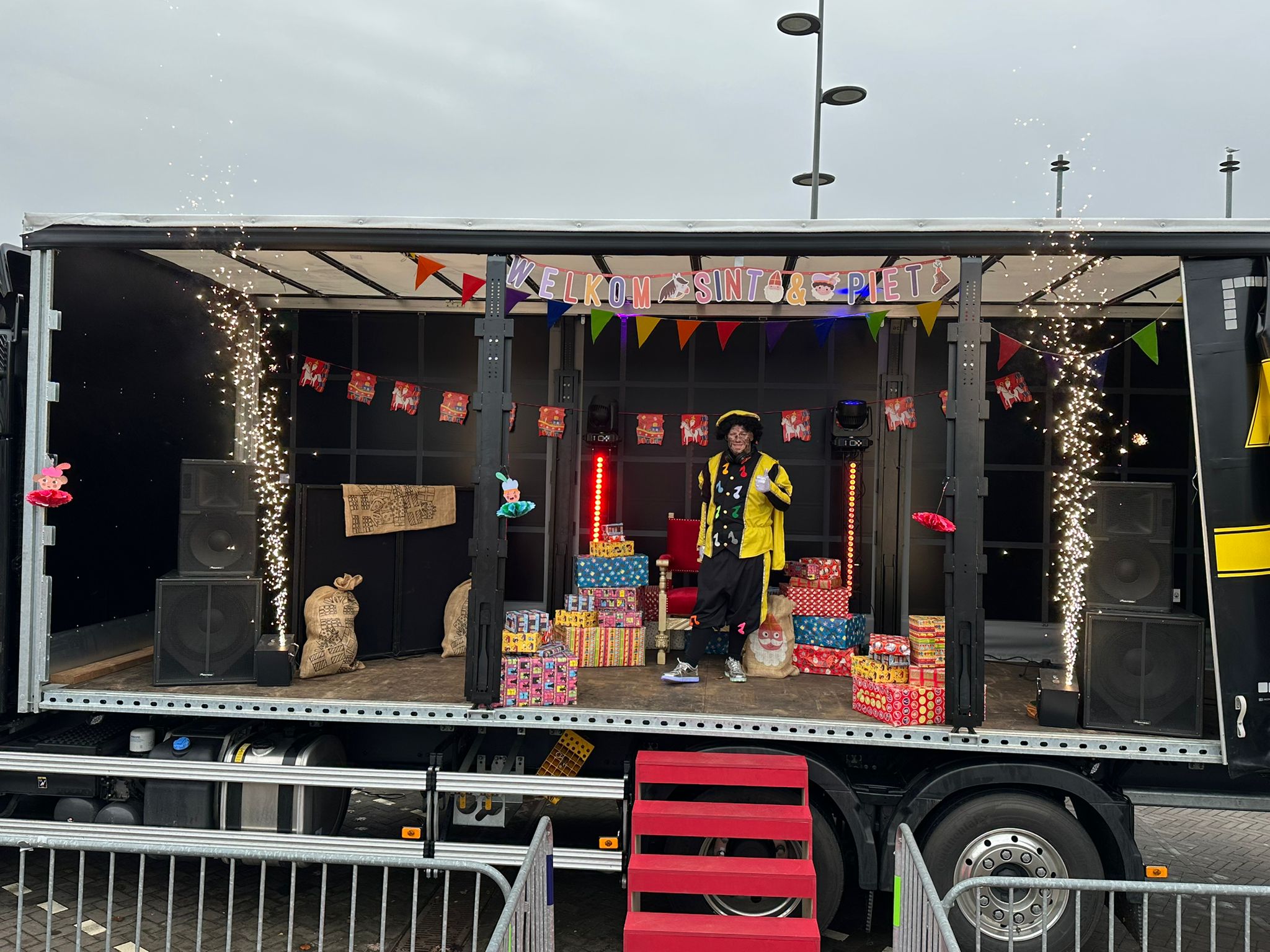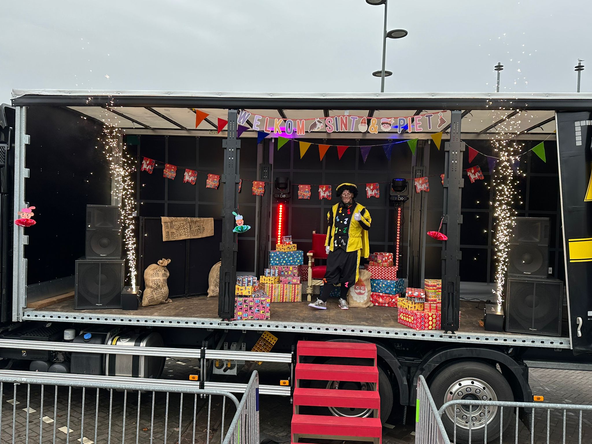 “Op zaterdag ochtend kwam sinterklaas op ons bedrijf met 55 kinderen cadeautjes brengen, om het wachten op te vullen, vulde de Disco Piet de dansvloer met leuke kinderliedjes en sinterklaasliedjes”